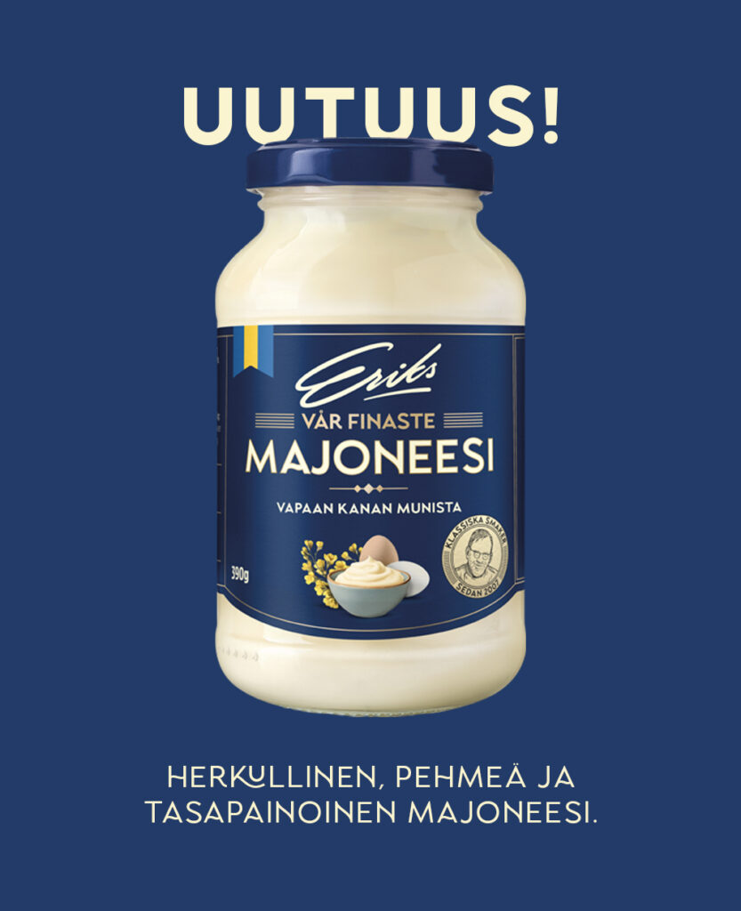 Täyteläinen ja pehmeä Eriks-majoneesi sopii niin arkeen kuin juhlaan. Kokeile rohkeasti ja ihastu!